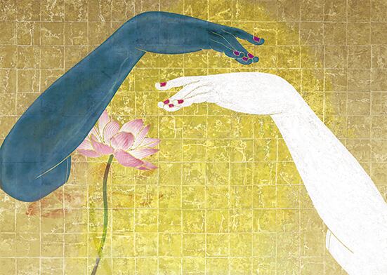 数年前、デザイン活動から創作活動への移行を考え始めた頃から、10 代の頃に見とれた金壁障壁画の勇壮なイメージ、歌麿の絵の微妙な妖艶さが、脳裏で徐々に濃いものになってきた。