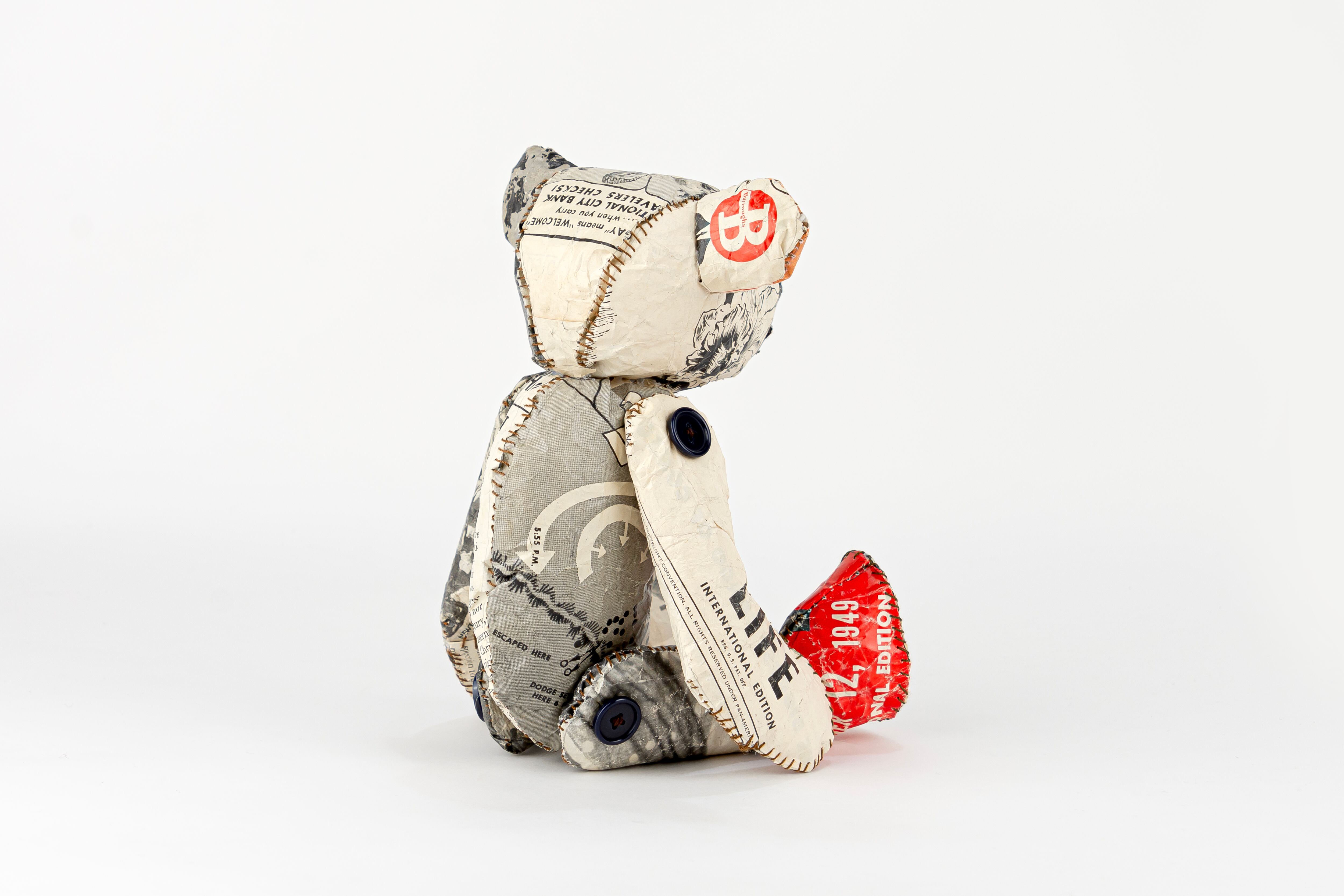 Material : magazine (LIFE,September,12,1949,USA), Japanese paper, thread, buttons, konnyaku paste